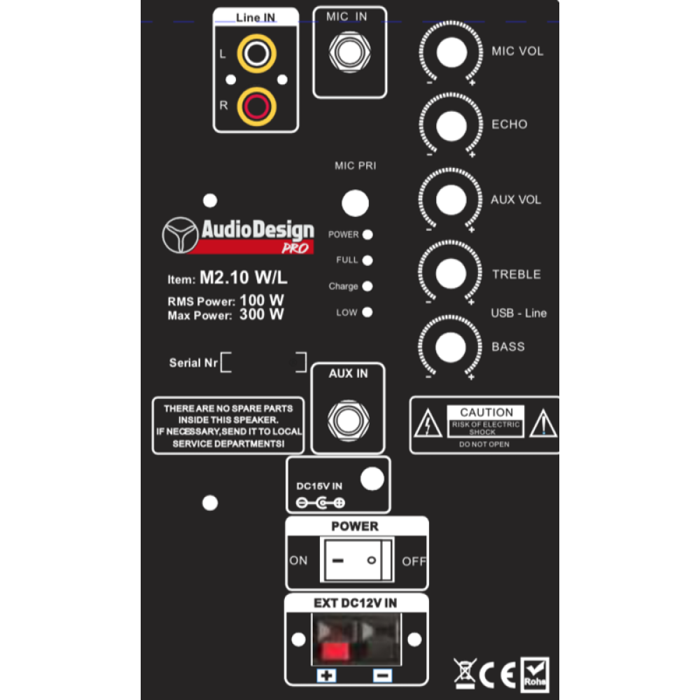 Audio Design M2 Diffusore Trolley 10" – Batteria, 10W