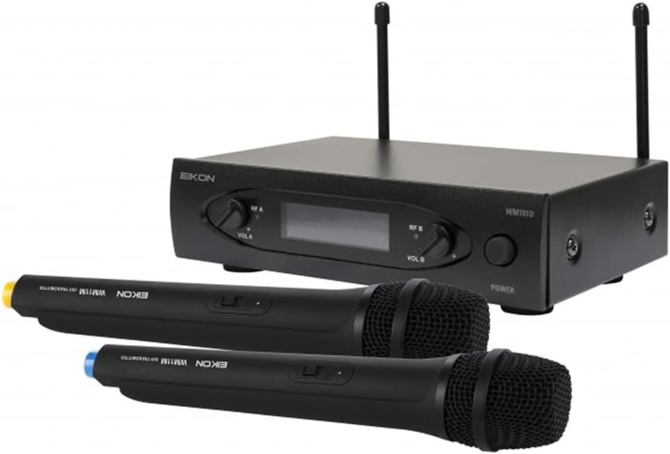 Eikon offre una vasta gamma di microfoni wireless, dai modelli VHF a canale singolo a quelli UHF PLL multicanale, tutti disponibili sia con trasmettitore palmare che belt-pack ed anche con una combinazione di entrambi. Una così ampia scelta di modelli consente di trovare la combinazione perfetta di performance e prezzo per qualsiasi tipo di applicazione, che va dai semplici setup vocali a singola sorgente ai grandi sistemi multicanale per il palco.