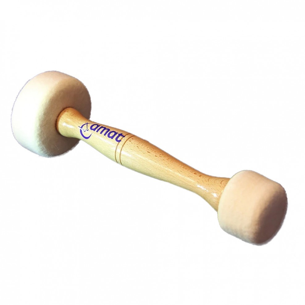 Questo battente per gran cassa possiede 2 teste in morbido feltro per poter avere più possibilità di suono.