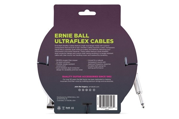Il 6047 è il cavo assemblato per strumento in PVC della serie "Original Classic" di casa Ernie Ball. Si presenta in colorazione bianca ed è realizzato con doppia schermatura e doppio conduttore, per una lunghezza di 6 metri. Un cavo robusto, affidabile e con una risposta in frequenza naturale.