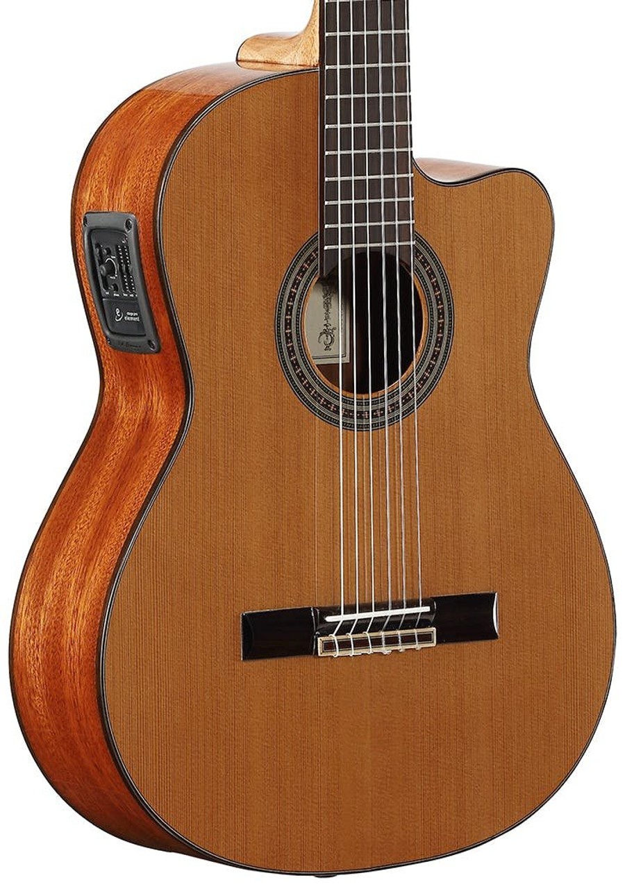 La Alvarez AC65CE è una chitarra classica elettroacustica per musicisti che ricercano qualità costruttiva, sensibilità timbrica e un’elevata resa dal vivo. La tavola in Cedro Rosso massello A+ offre una risposta dinamica immediata e un suono caldo e avvolgente, mentre il sistema di amplificazione LR Baggs StagePro EQ / Element Pickup garantisce un suono naturale e dettagliato anche collegata all’impianto o a un amplificatore.