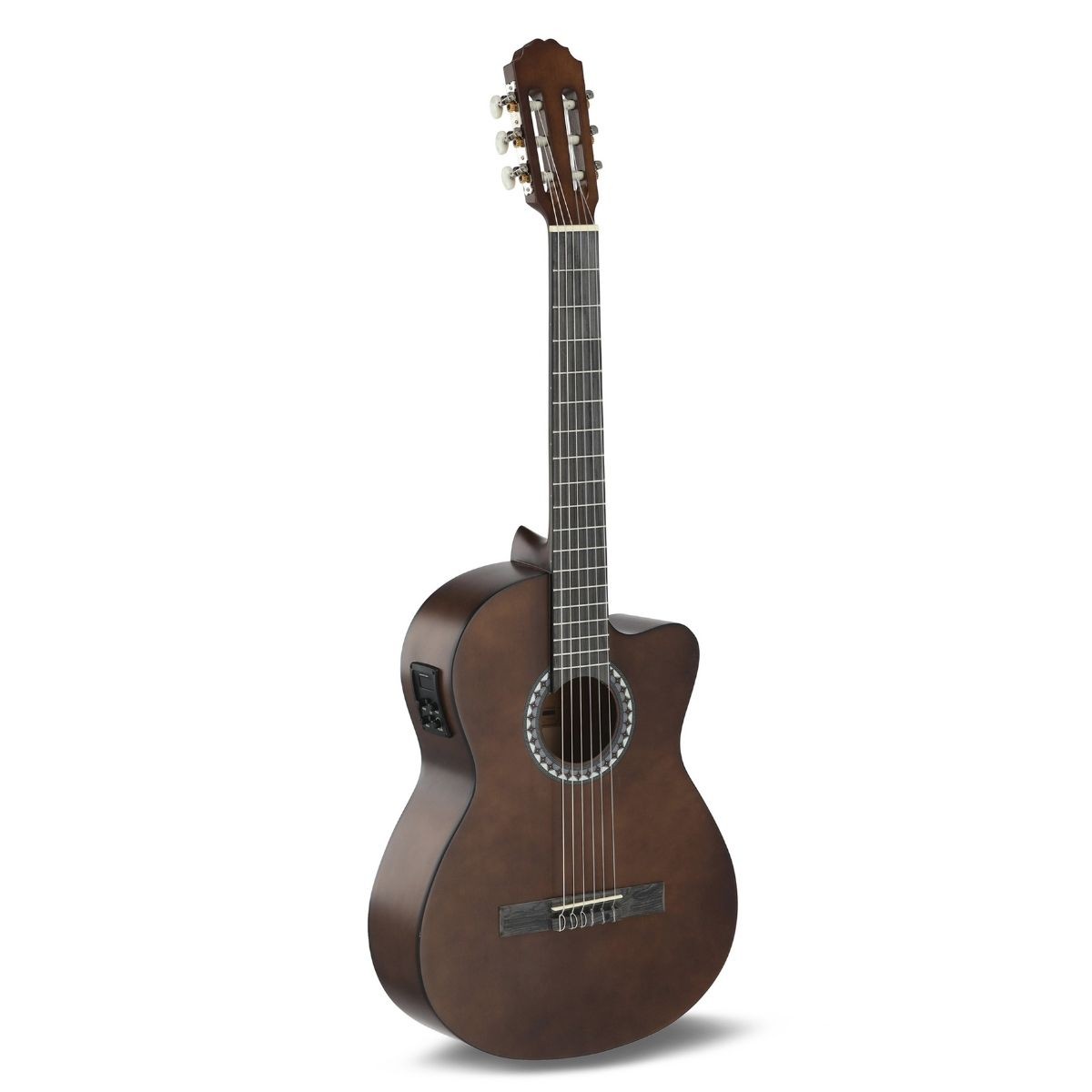 La scala da 650 mm e il capotasto da 52 mm offrono un feeling tradizionale, stabile e comodo, ideale per lo studio della chitarra classica. Il cutaway permette di raggiungere facilmente le note più alte. Il corpo in tiglio produce un timbro caldo e bilanciato, mentre l'amplificazione con EQ a 4 bande consente di modellare il suono con precisione in qualsiasi situazione.