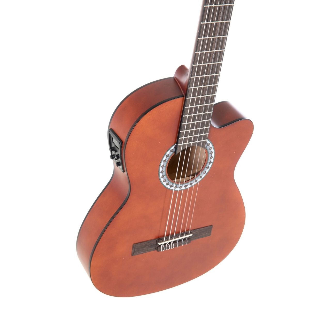 - È una chitarra classica con EQ integrato, il che significa che può essere utilizzata sia acusticamente che amplificata.