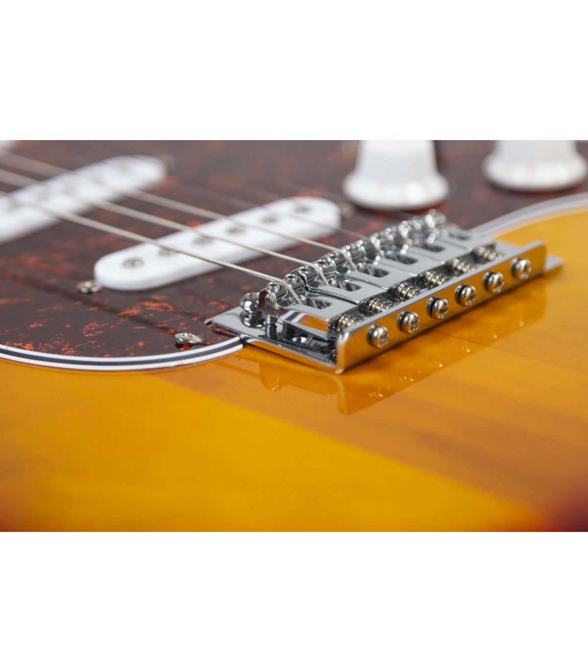 La Chitarra Elettrica De Salvo Strato Sunburst è lo strumento ideale per iniziare a suonare con un look classico, un prezzo accessibile e una buona versatilità sonora. Perfetta come prima chitarra elettrica, ti accompagnerà nello studio e nelle tue prime performance.