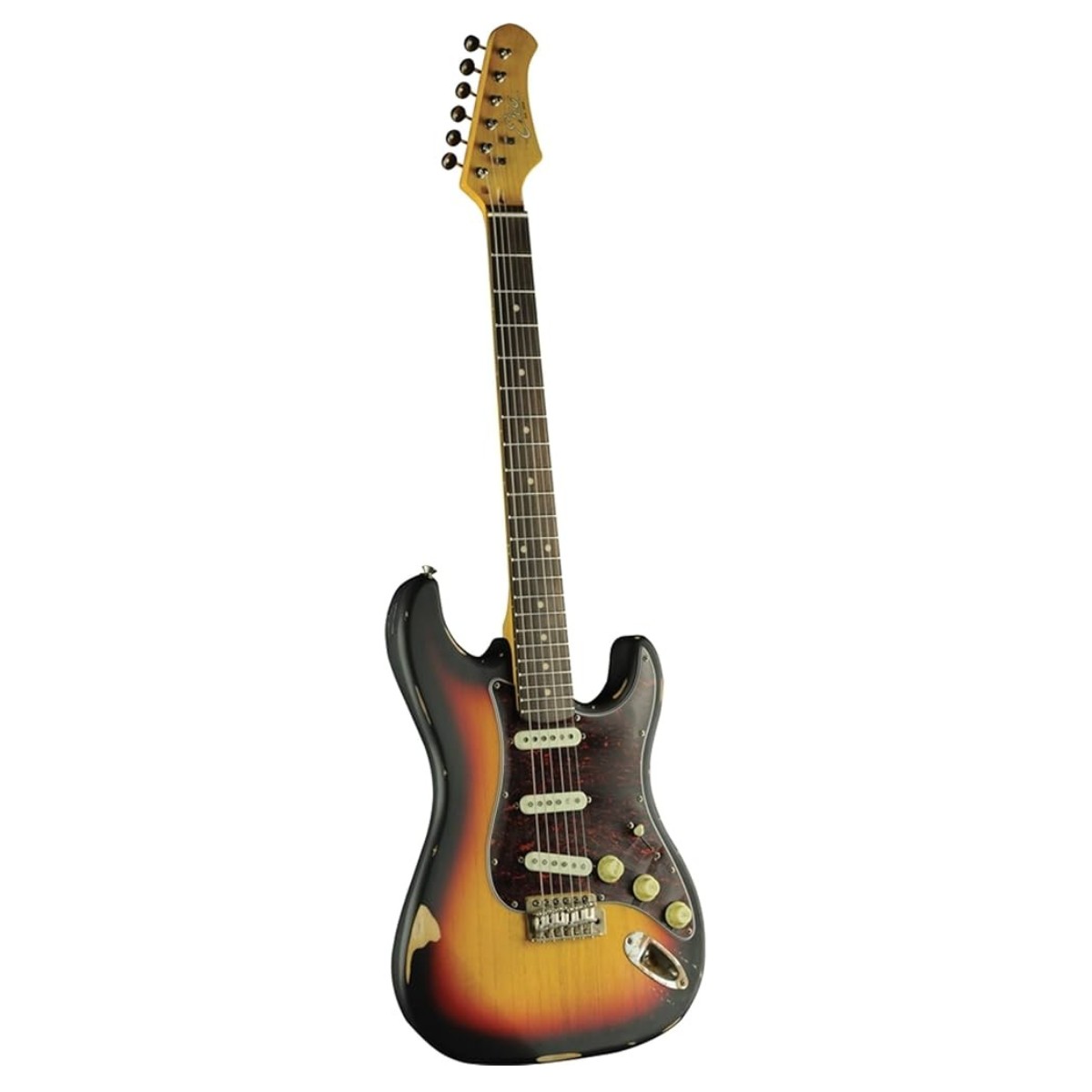 La Eko S-300 Relic Sunburst è una chitarra elettrica solid body dal look vissuto e affascinante, che richiama le iconiche chitarre vintage con finitura Relic. Perfetta per principianti e chitarristi che amano lo stile classico, unisce praticità, comfort e un suono versatile adatto a diversi generi.