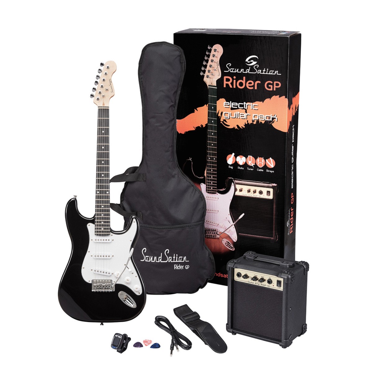 La Chitarra Elettrica Soundsation Rider GP Black Pack Student è la scelta perfetta per chi vuole iniziare a suonare con tutto il necessario incluso. Facile, completa ed economica, rappresenta la soluzione ideale per studenti e principianti.