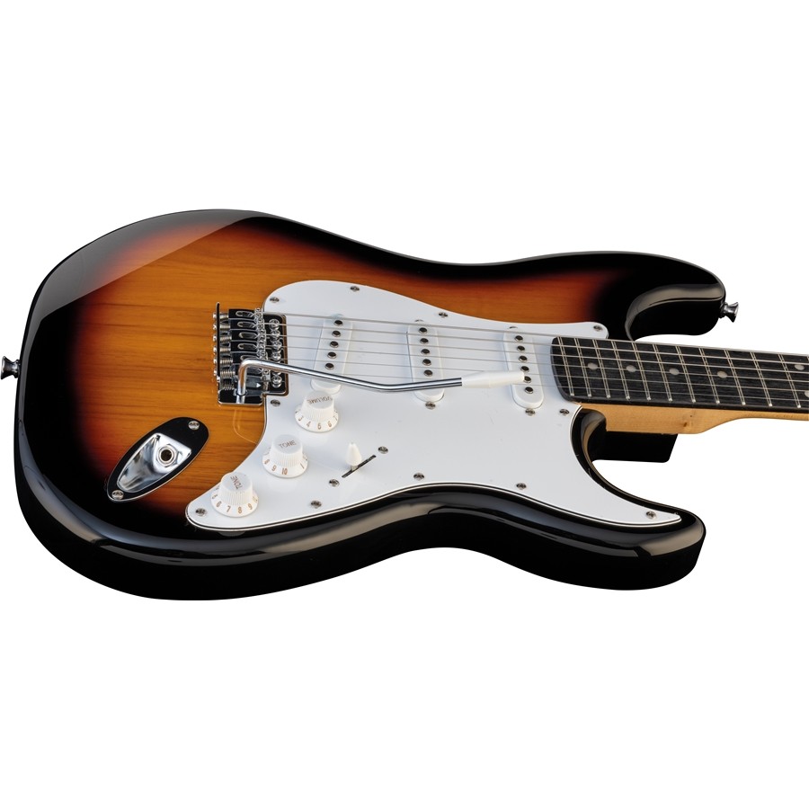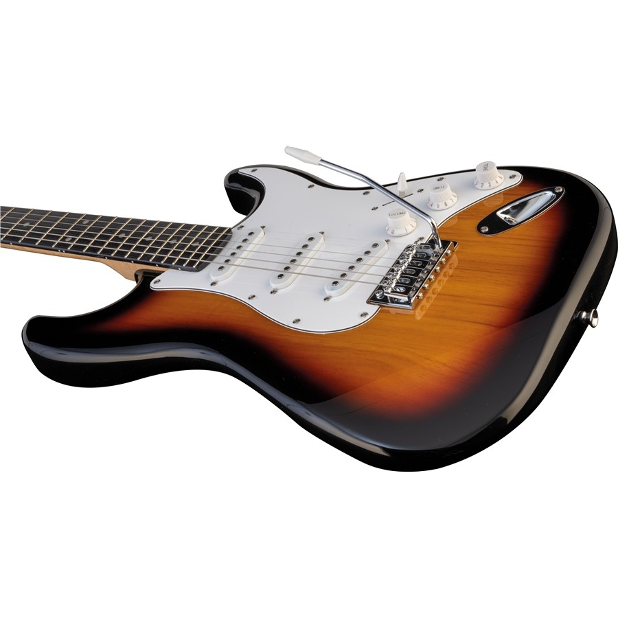La S-300 Sunburst è la chitarra elettrica della serie "Tribute Starter" di casa Eko Guitars con corpo in Pioppo carbonizzato, manico in Acero e tastiera in Resina. È equipaggiata con pickup Eko in configurazione S-S-S, controlli di Volume e due Toni, switch blade a 5 vie e ponte con leva tremolo. Ideale per iniziare lo studio della chitarra elettrica con uno strumento performante, confortevole e con un ottimo rapporto prezzo/qualità.
