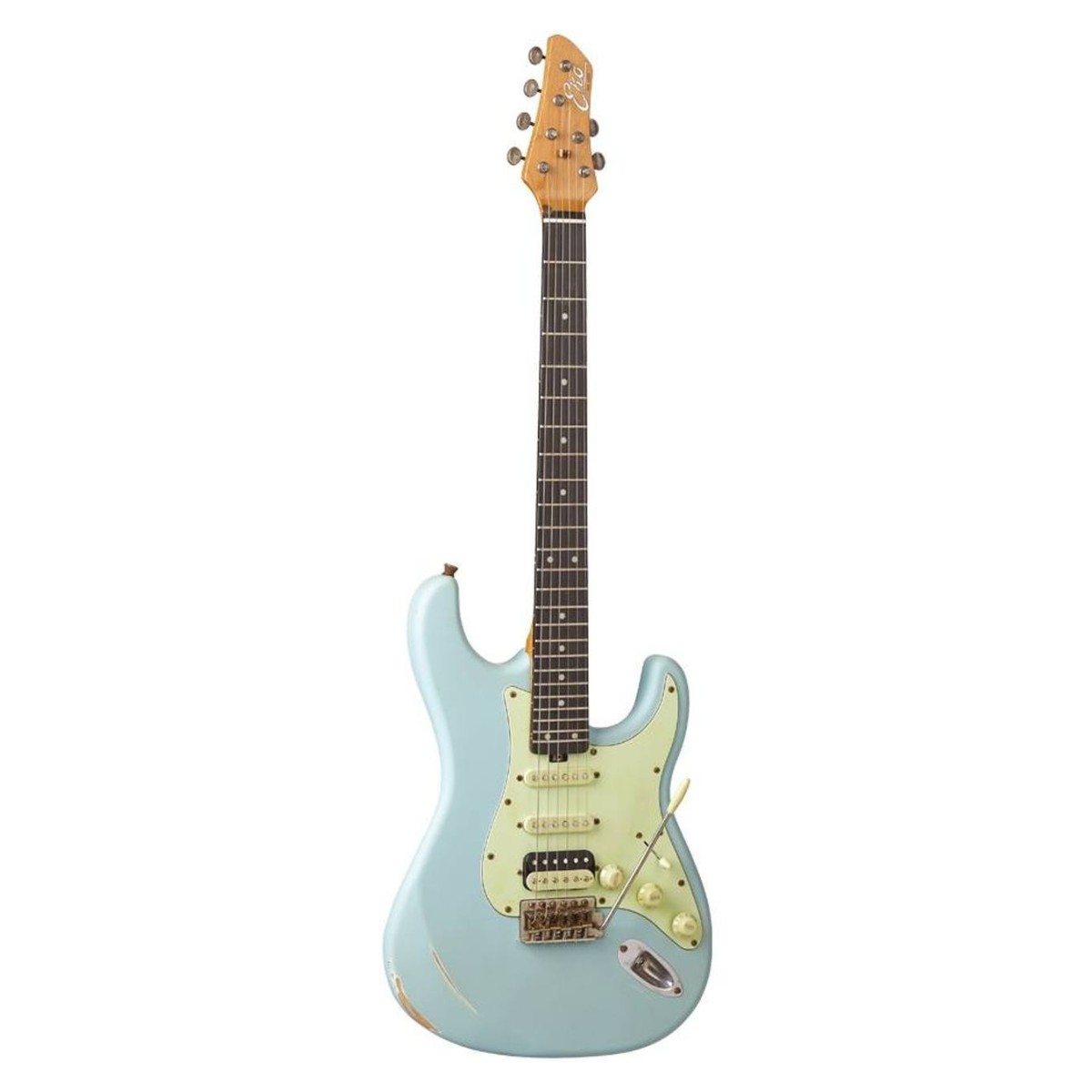 La Eko Aire Relic Daphne Blue è una chitarra elettrica solid body che unisce il fascino intramontabile del look vintage alla praticità di uno strumento moderno e accessibile. La finitura Relic conferisce un aspetto consumato unico, perfetto per chi ama il carattere delle chitarre d’altri tempi senza rinunciare all’affidabilità di oggi.