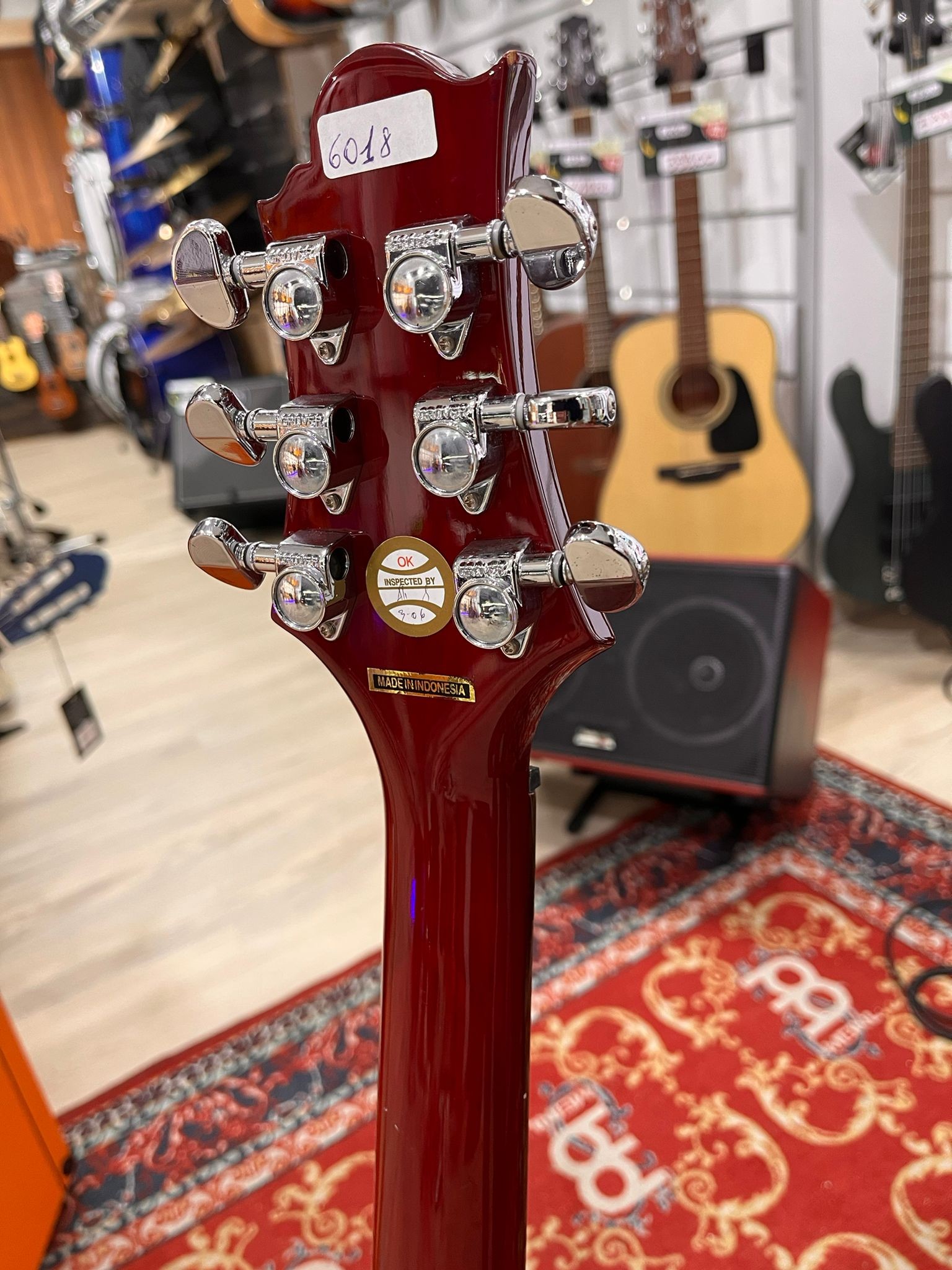 Il corpo in nato offre un timbro pieno e caldo, valorizzato dalla configurazione a due humbucker che garantisce potenza, profondità e zero rumori indesiderati. La tastiera in palissandro facilita la scorrevolezza e la risposta dinamica. La paletta compatta migliora la pressione delle corde sul capotasto, aumentando sustain e stabilità dell'accordatura.