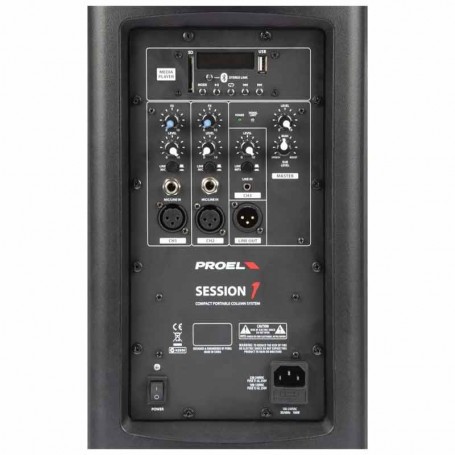 Session1 è un sistema a colonna portatile dotato di ingressi multipli e di un versatile lettore MP3 con connettività Bluetooth. Alloggiato in cabinet in polipropilene leggeri e robusti allo stesso tempo, è formato da una colonna con 4 altoparlanti full-range da 2.5" ed un potente subwoofer da 8". L’elettronica allo stato dell’arte include una sofisticata sezione di preamplificazione con filtri attivi e doppio limiter, oltre ad un potente amplificatore in Classe D da 400 Watt.
