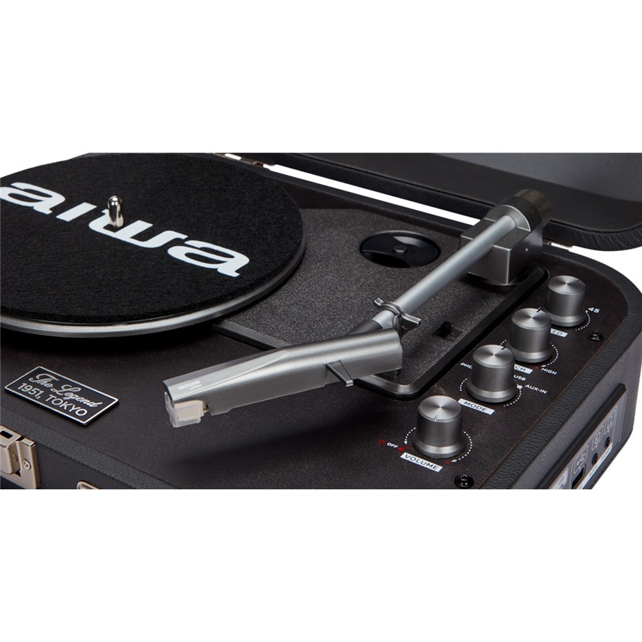 Con il giradischi AIWA VPX-1951TN finitura color Titanio, puoi rivivere l’epoca d’oro dei dischi in vinile e delle fonovaligie portatili usate per suonarli! Il suo look vintage ti proietta direttamente nei favolosi anni 50, anche se adotta la tecnologia più recente. Puoi riprodurre musica wireless da uno smartphone o altro dispositivo tramite il Bluetooth V5.0 integrato, oppure file audio MP3 dalla porta USB. VPX-1951TN può essere usato inoltre per registrare e archiviare i tuoi dischi su un dispositivo di memoria, mentre Il sistema d’altoparlanti stereo interno assicura una riproduzione dinamica e definita, con la possibilità naturalmente di collegare VPX-1951TN ad un impianto Hi-Fi esterno.