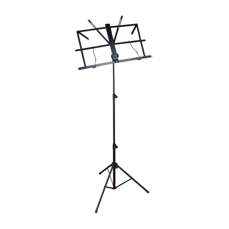Leggio Standard Altezza: da 500 mm a 1250 mmSupporto spartito: 490 mm x 250 mmPedata: 340 mm x 340 mm x 340 mmColore: black, powdercoatedCompletamente pieghevoleDue braccietti flessibili per fermare la partituraCustodia con strap per il trasportoPeso: 830 g