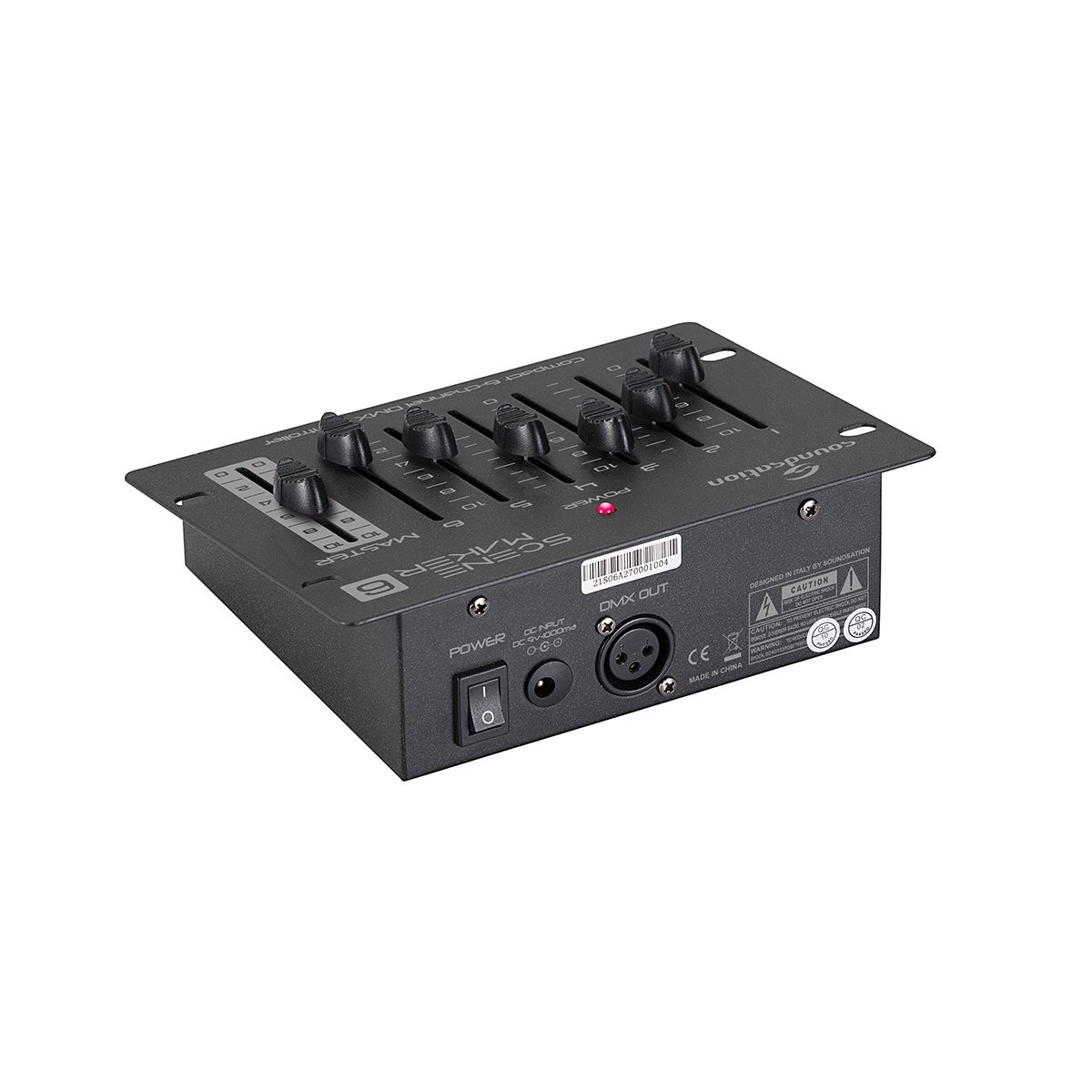 Scenemaker 6 di soundsation è una centralina dmx compatta a 6 canali con 6 slider per il controllo diretto dei canali dmx da 1 a 6. e' inoltre dotata di un ulteriore slider master come controllo generale su tutti i canali. e' estremamente compatta, leggera e facilissima da utilizzare per qualsiasi utente.