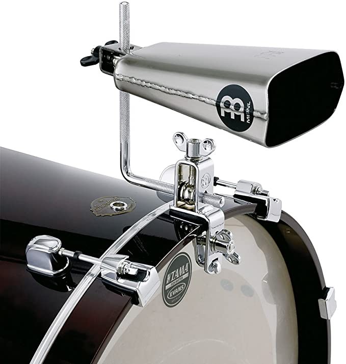 Raccordo standard per attaccare il campanaccio o il tamburello alla grancassa. È regolabile in altezza e mantiene lo strumento in posizione senza muoversi.