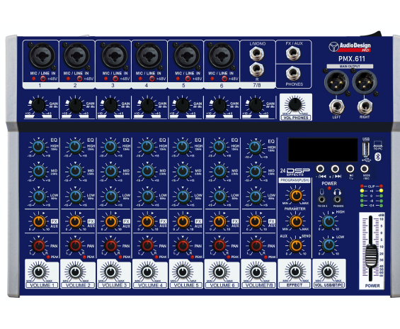 Mixer Audio Design PMX.611 8 Canali Con USB, Bluetooth E 24 Effetti Integrati