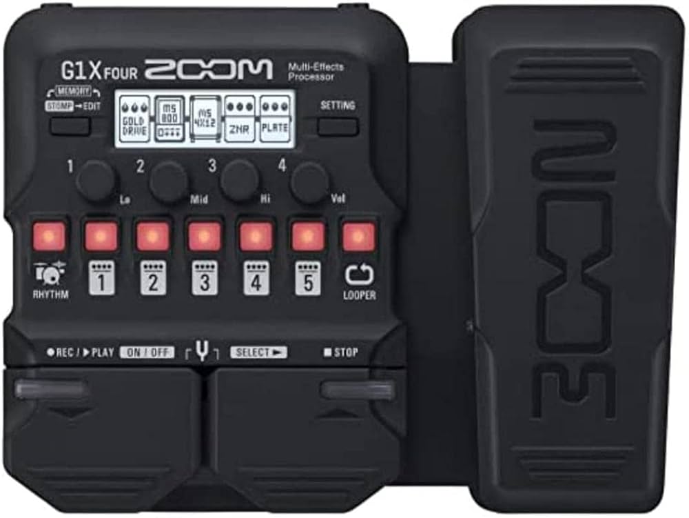 Lo Zoom G1X Four è dotato di oltre 70 effetti tradizionali e boutique. Aggiungi dimensione al tuo suono con delay e riverberi. Dai lucentezza ai tuoi suoni con un chorus, un flanger o un phaser. Oppure cerca qualcosa di più esoterico come un ring modulator, un delay pitch-shifting o una simulazione di sitar - è tutto lì dentro. Ci sono anche 13 modelli di amplificatori classici e di cabinet a bordo, che coprono dalla tranquillità dei clean all'anarchia degli high-gain. Si possono usare fino a cinque effetti contemporaneamente, concatenati insieme in qualsiasi ordine. E quando hai composto tutto, puoi salvare fino a 50 patch utente. I metronomi sono ottimi per mantenere il tempo, ma non sono molto stimolanti. Ecco perché il G1X Four include 68 pattern di batteria incorporati. Questi ritmi straordinari ti danno un sacco di cose da fare, vantando più tempi - 4/4, 3/4 ed altro. Grazie al looper dello Zoom G1X Four, puoi stabilire una progressione di accordi, creare un loop, quindi riprodurlo. E' possibile registrare e creare loop fino a 30 secondi di audio in qualità CD, che sono più che sufficienti per creare arrangiamenti dinamici a più parti. E non pensare che l'utilità del looper di G1X Four sia limitata alle sessioni di esercitazione: è anche un fantastico strumento per le tue esibizioni.
