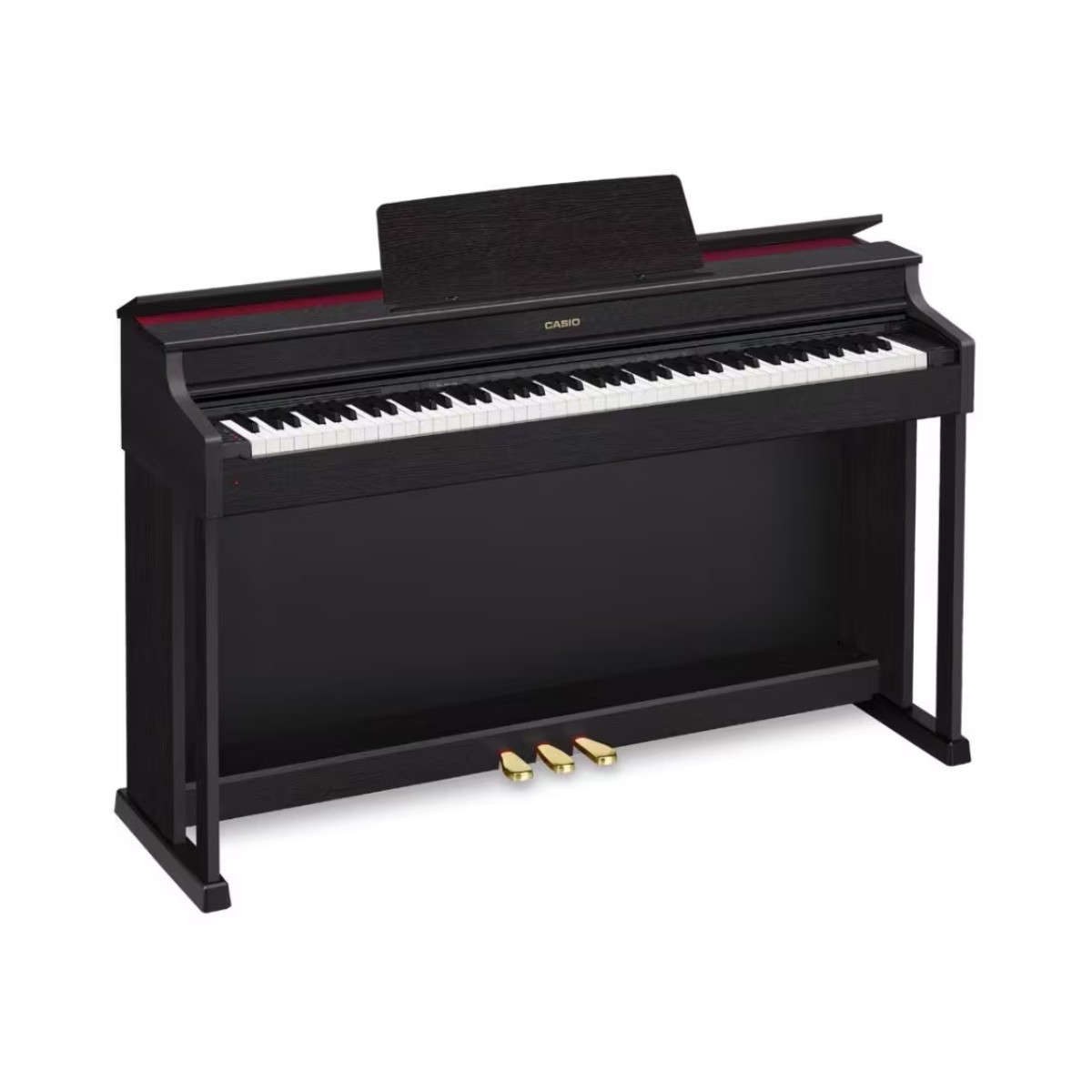 Casio AP 470 Celviano Black è un pianoforte digitale 88 tasti con finiture nere. La famiglia di pianoforti Celviano è sinonimo di autenticità.