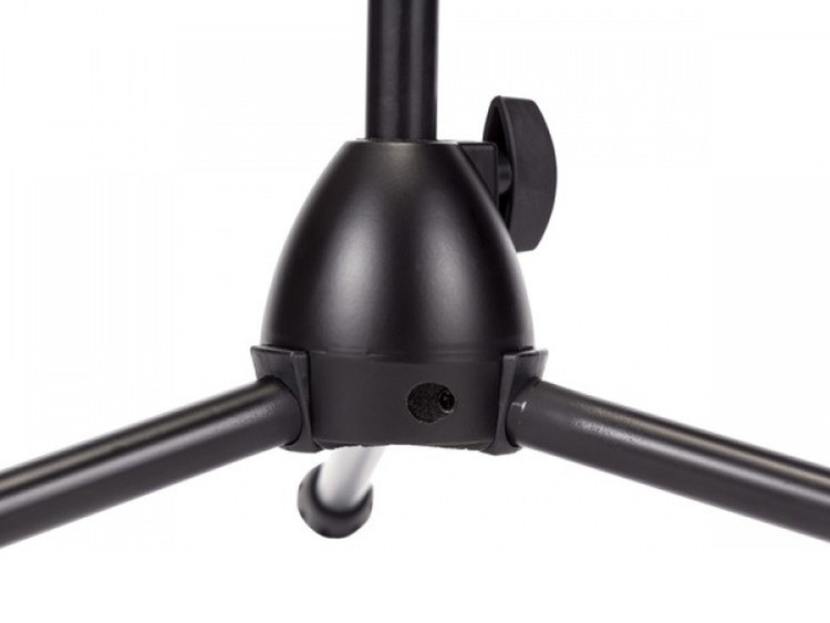 Asta professionale “nana”, con giraffa telescopica per microfono. Dotata di base tripoide realizzata in alluminio pressofuso ad elevata stabilità, corredata di snodi in nylon per il movimento dei gambi.