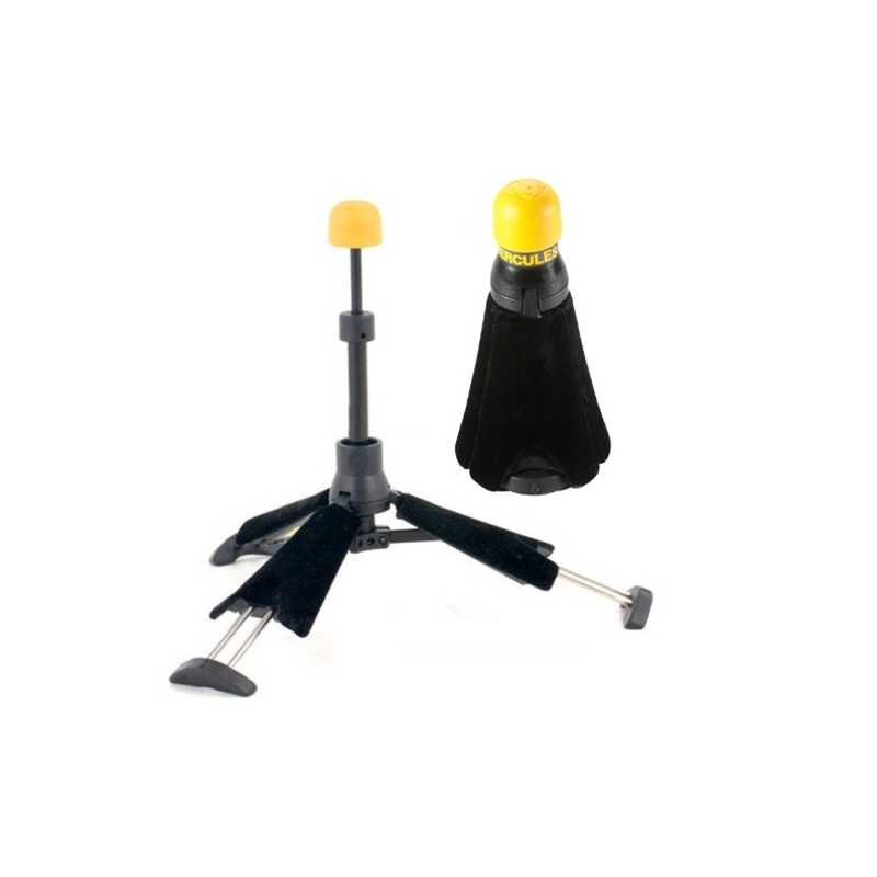 Il supporto per clarinetto Hercules TravLite DS440B di solida costruzione è robusto, leggero e si piega in modo compatto per essere riposto all'interno della campana. I cuscinetti in velluto proteggono la campana dello strumento
