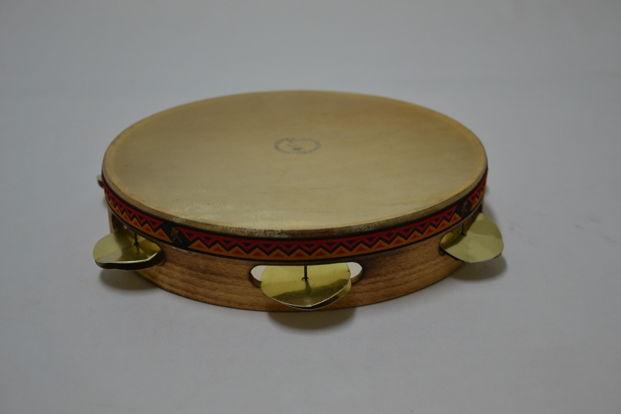 Tamburello Artigianale 25 cm In Legno Di Faggio Fiammato Con Pelle Naturale