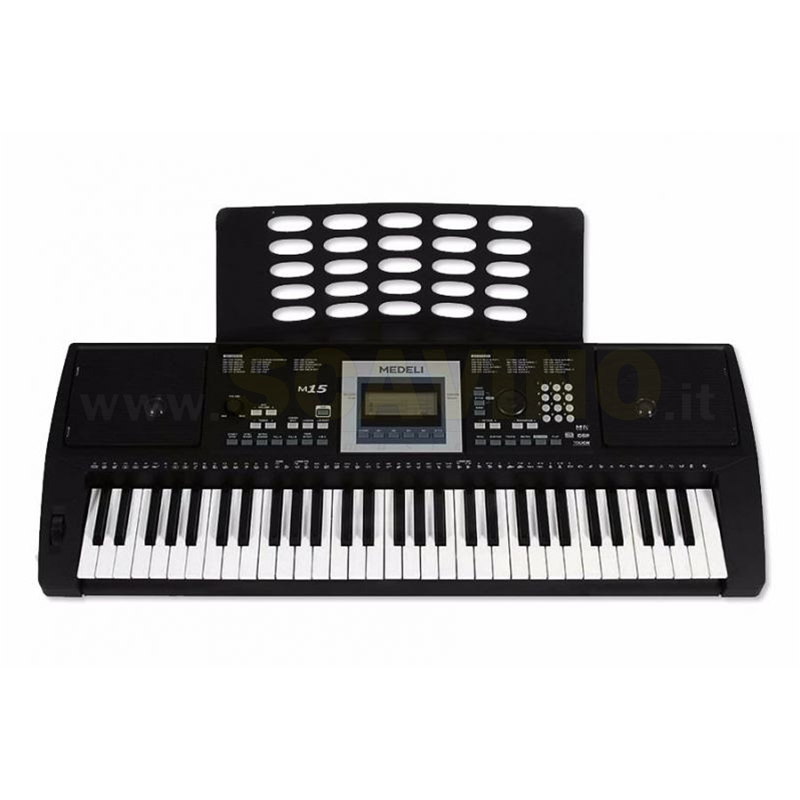 MEDELI M15 è una tastiera a 61 tasti con sensibilità al tocco facile da usare con un ottimo rapporto qualità prezzo. Il layout è molto intuitivo e include una rotellina per la scelta rapida di uno qualsiasi dei 300 suoni.