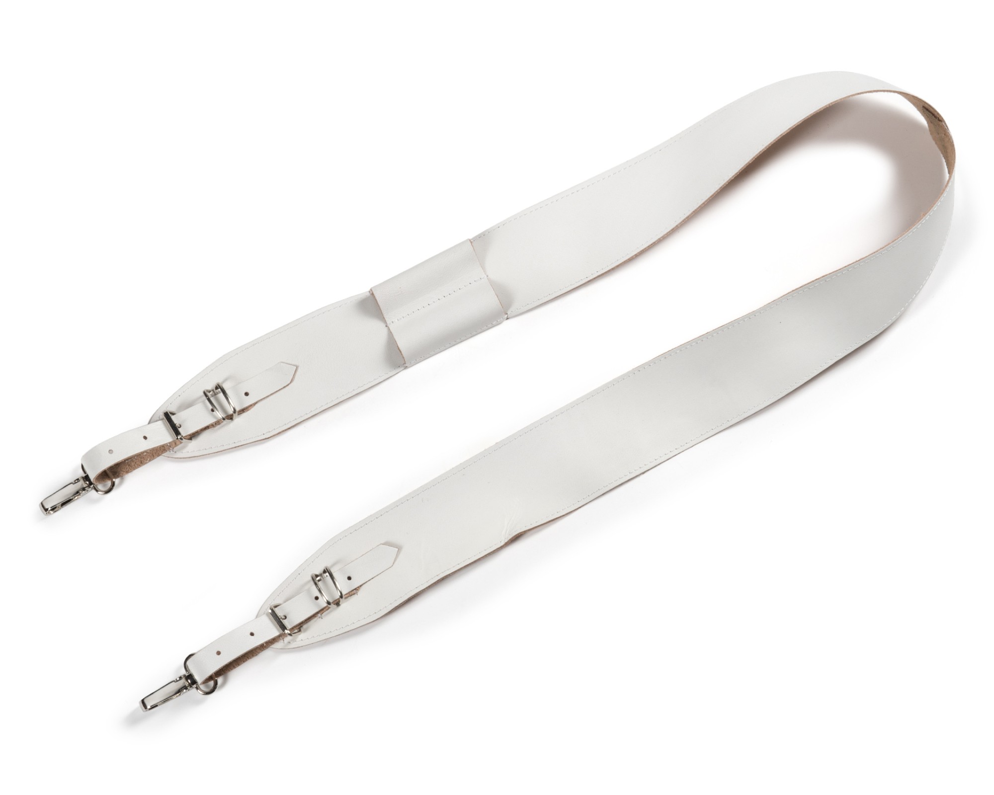 Tracolla per rullante in vero cuoio bianca con porta bacchette